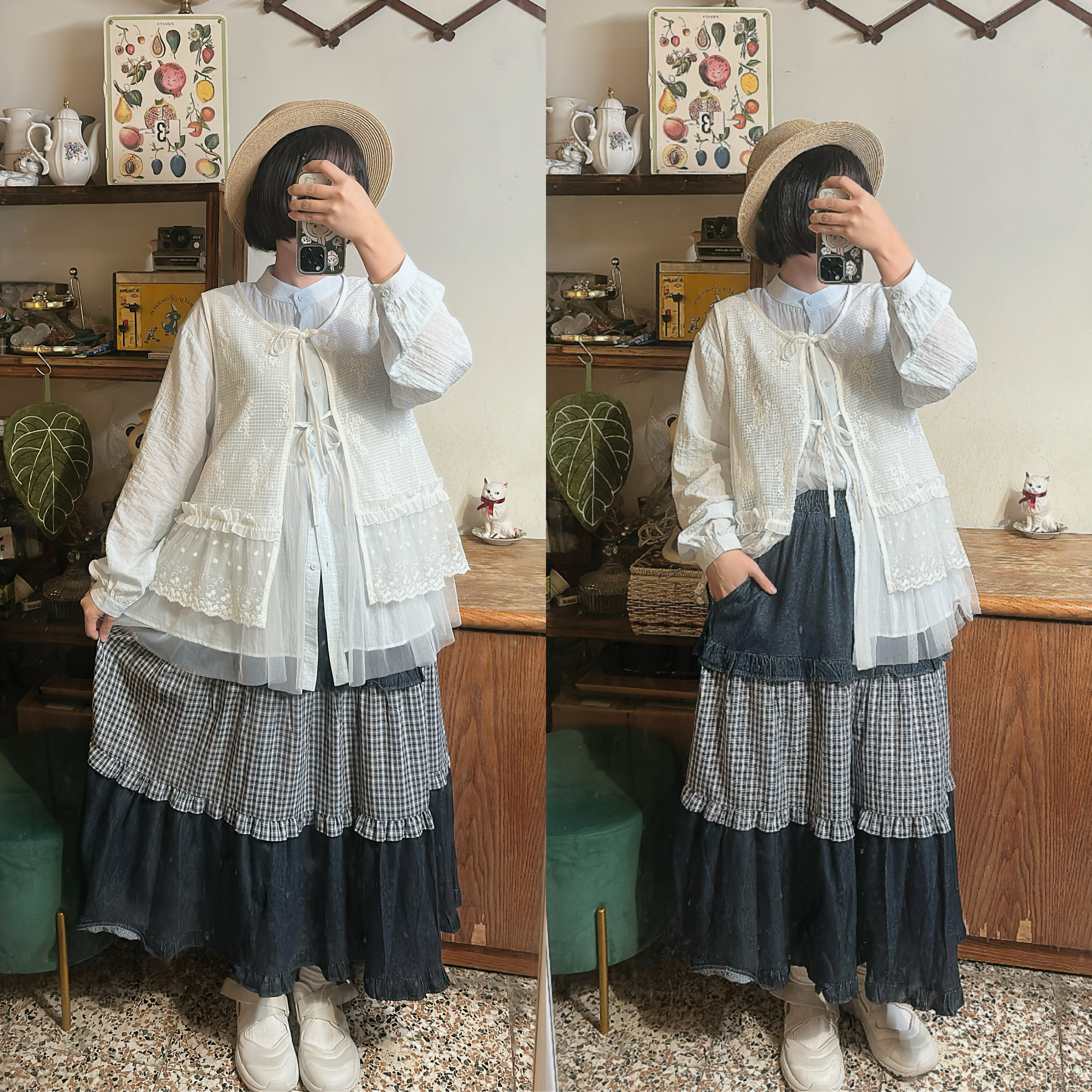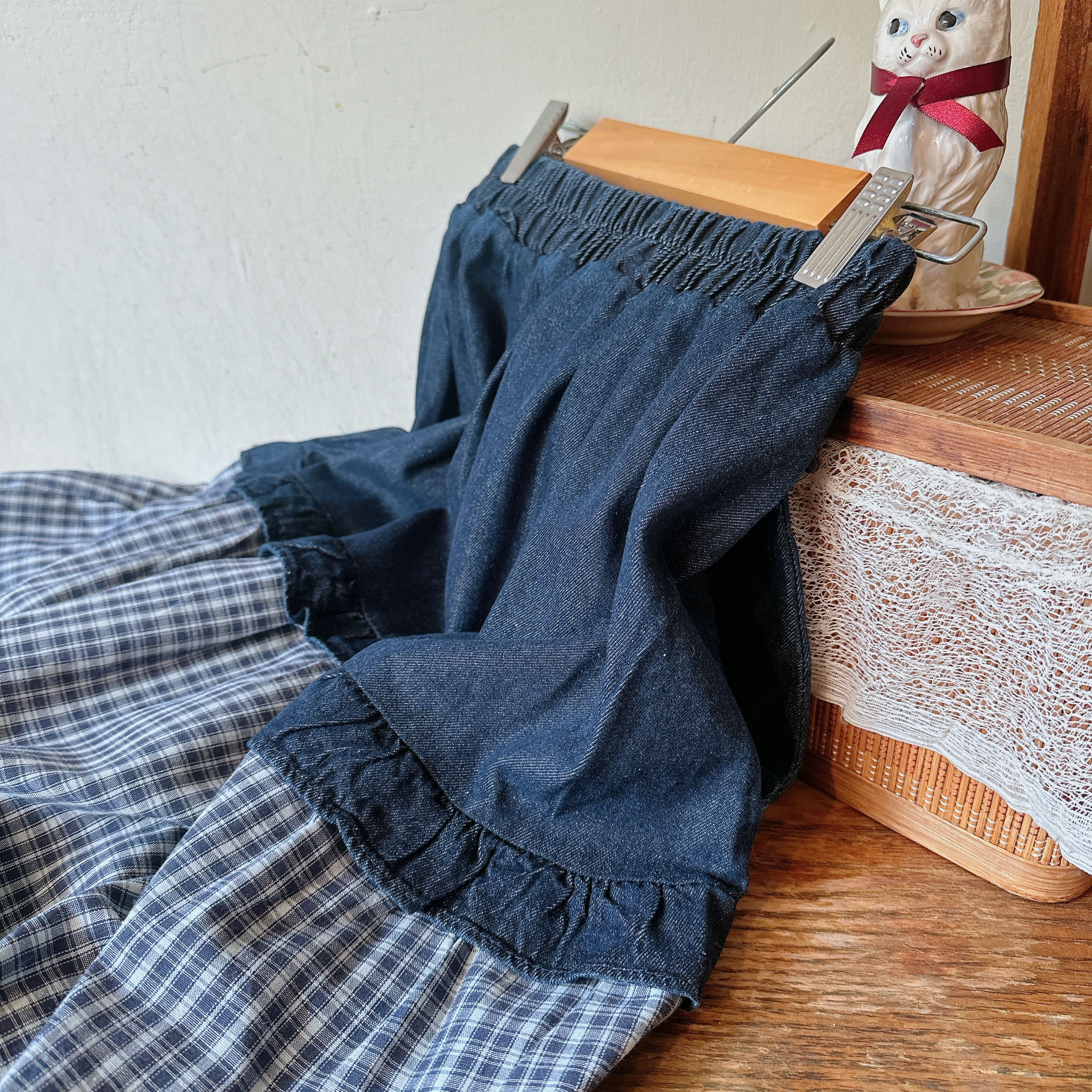牛仔拼接設計,兩側有口袋超讚*⸜♡⸝*